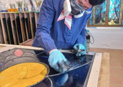 Dopo aver vissuto e lavorato per anni a Bonn e Francoforte, Oksana Kondratyeva ha perfezionato le sue competenze nell’arte delle vetrate artistiche presso il Central Saint Martins, University of Arts London. Le sue opere, principalmente in vetro, sono state integrate in edifici storici e contemporanei in tutto il Regno Unito come arte architettonica. Il suo lavoro sperimentale sul vetro è stato selezionato per essere esposto alla Biennale britannica del vetro 2024. Le vetrate e i dipinti dell’artista sono stati presentati in prestigiose pubblicazioni, tra cui la rivista Physics World.